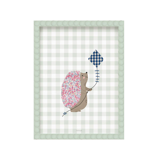 El marco está fabricado en tablero de fibras, un material resistente, sostenible y ligero elaborado a partir de madera reciclada. El frente protector es de vidrio acrílico o poliestireno, mucho más liviano y seguro que el cristal, por lo que es ideal para decorar dormitorios infantiles.